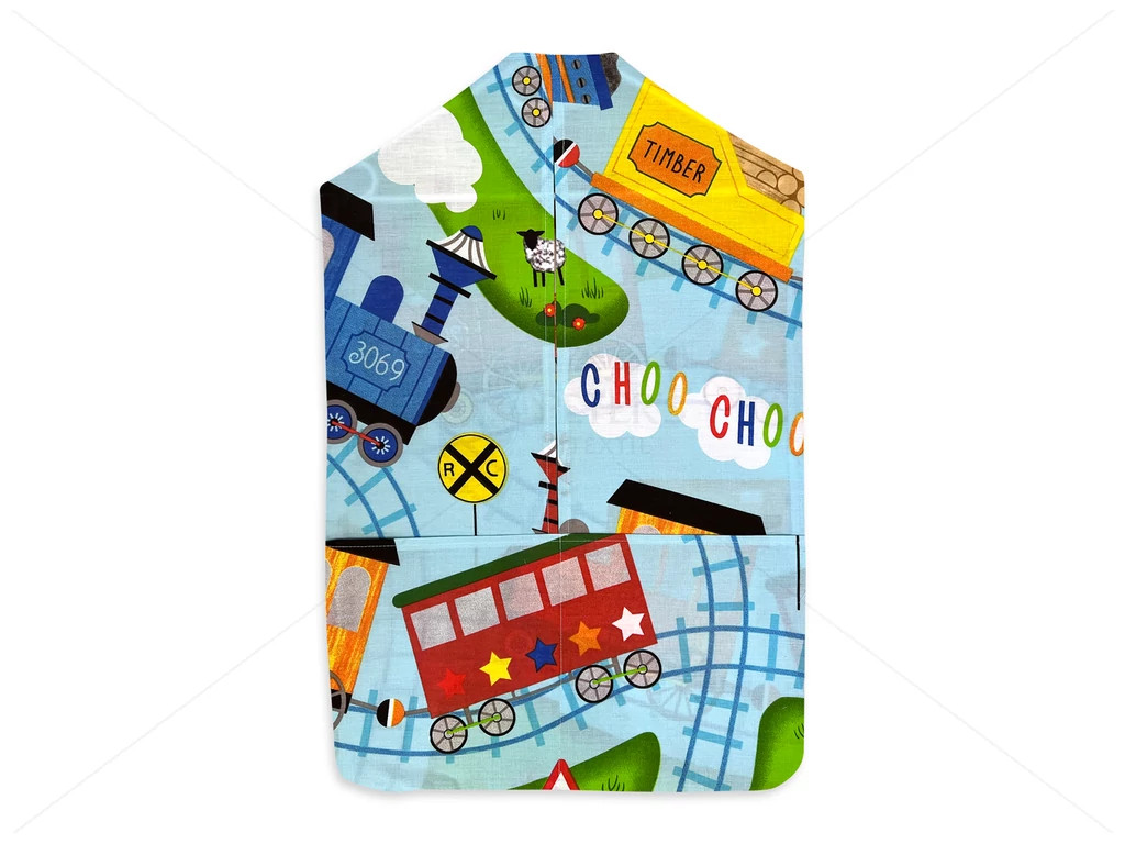 Ovis zsák, bölcsis zsák, ruhazsák Vonat mintával