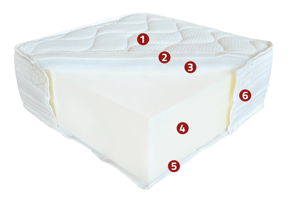 - 18 cm ortopédiai poliuretán kemény mag (30 kg/m3 sűrűség, 4.8 kPa nyomás)